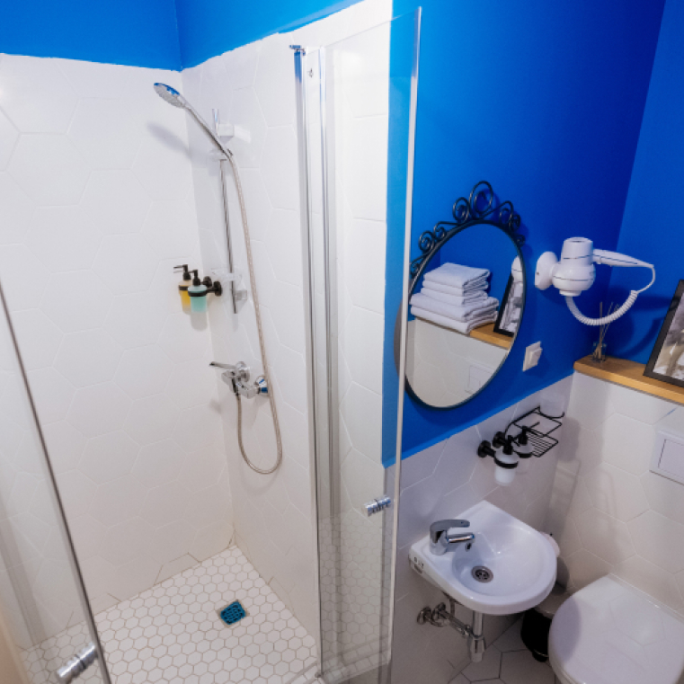 Небольшой номер в итальянском стиле с двуспальной кроватью, оборудованный удобным санузлом, телевизором и Wi Fi